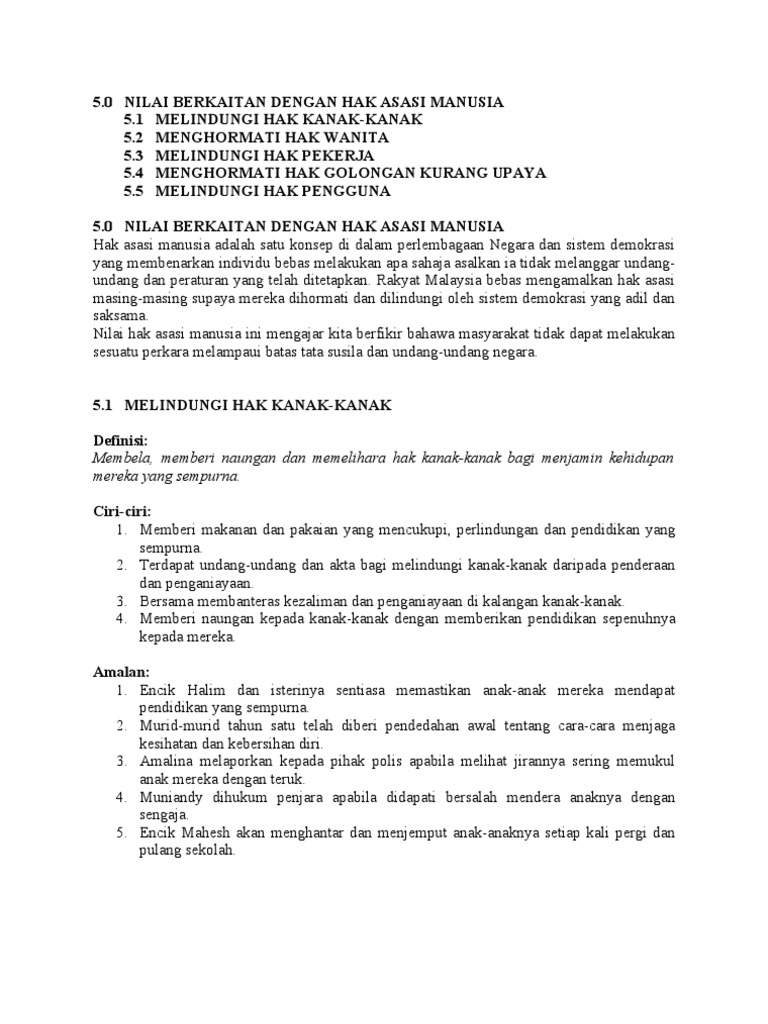 Bidang 5 Nilai Berkaitan Dengan Hak Asasi Manusia