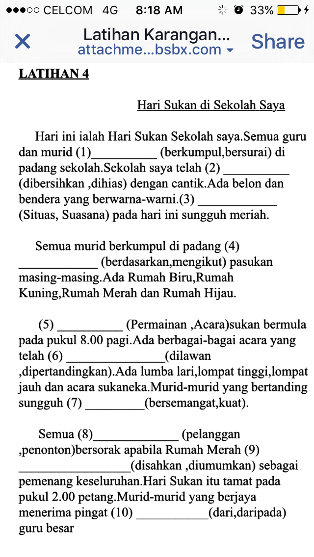 Hari sukan di sekolah saya karangan. Murid murid pula berkumpul di khemah rumah sukan masing masing. Human translations with examples. Pada hari sabtu yang lalu sekolah saya telah mengadakan sambutan. Para ibu bapa mengambil tempat duduk di bawah kanopi khas yang disediakan.