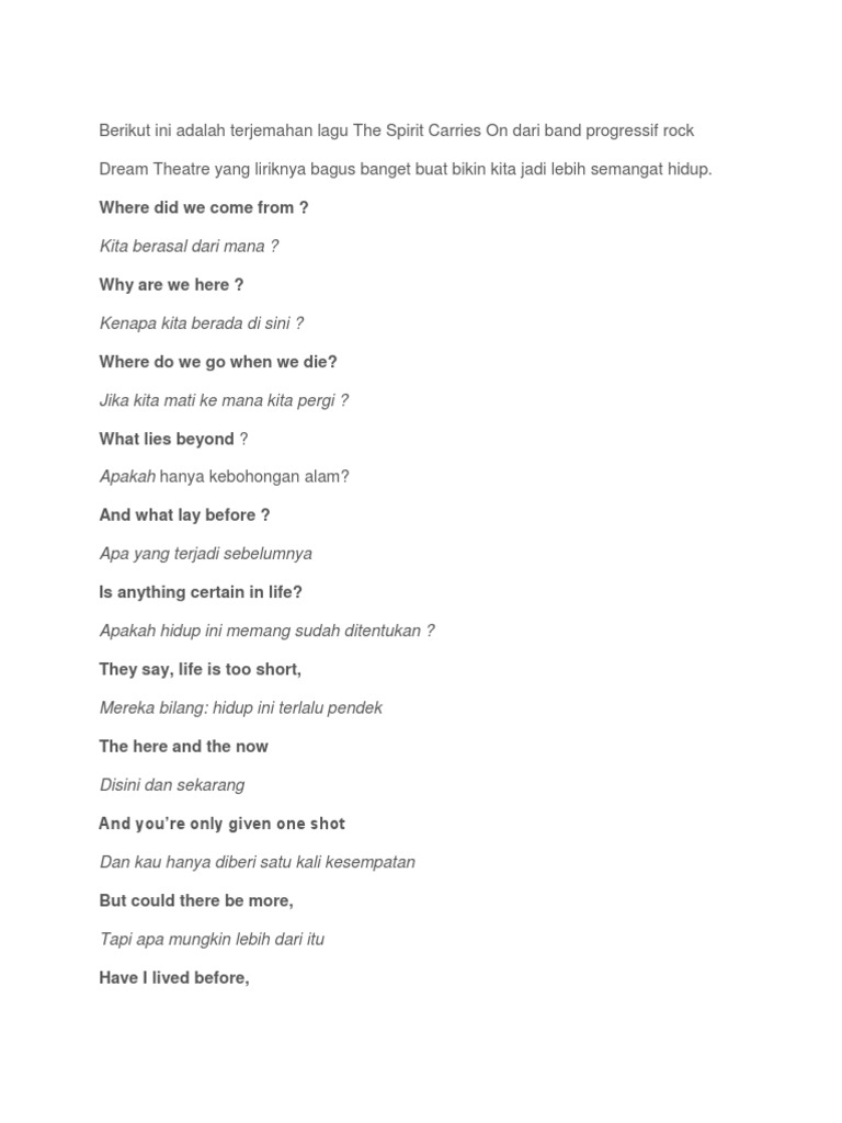The Spirit Carries On Rekreasi Hiburan Umum