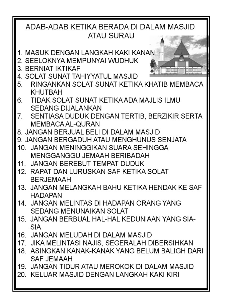 Adab Adab Semasa Di Masjid Atau Surau Surau Al Hakim Sktp 2013