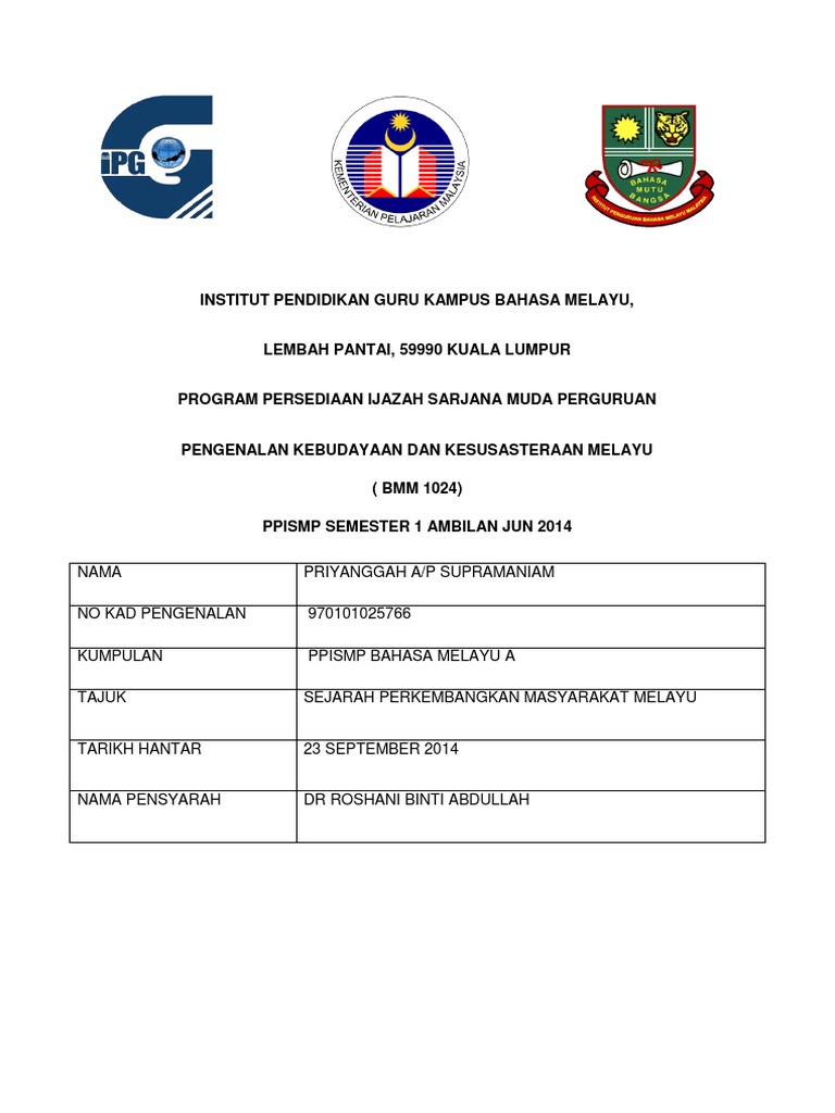 Institut Pendidikan Guru Kampus Bahasa Melayu 59990 Lembah Pantai Kuala Lumpur
