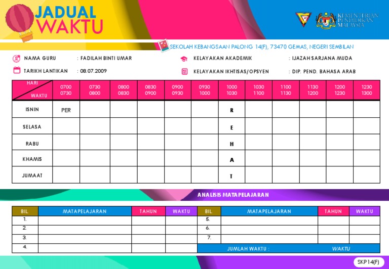 Jadual Waktu Guru Kelas 2azam Pdf Document