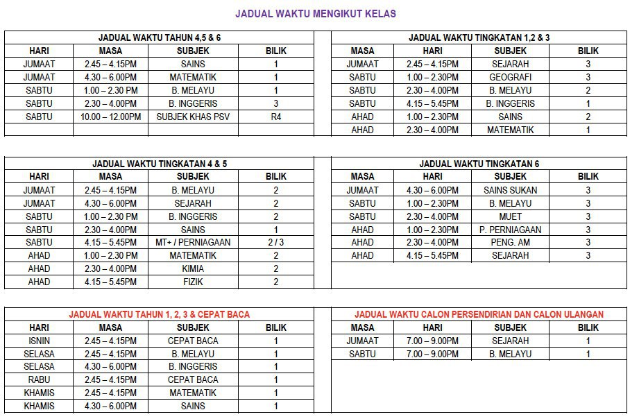 Jadual Waktu Kelas Tingkatan 6 Rendah Pusat Bimbingan Tanjung Facebook