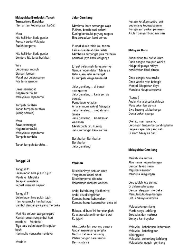 Jalur Gemilang Warisan Lirik Lagu Patriotik