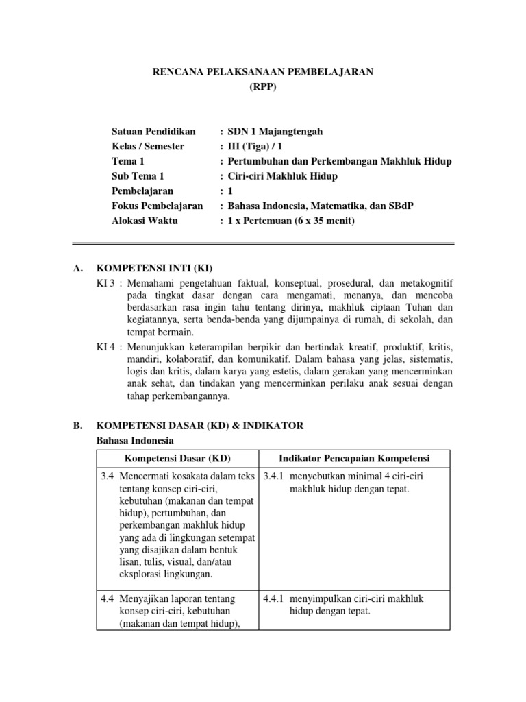 1 Rpp 3 2 Menyayangi Dan Perkembangan Makhluk Hidup