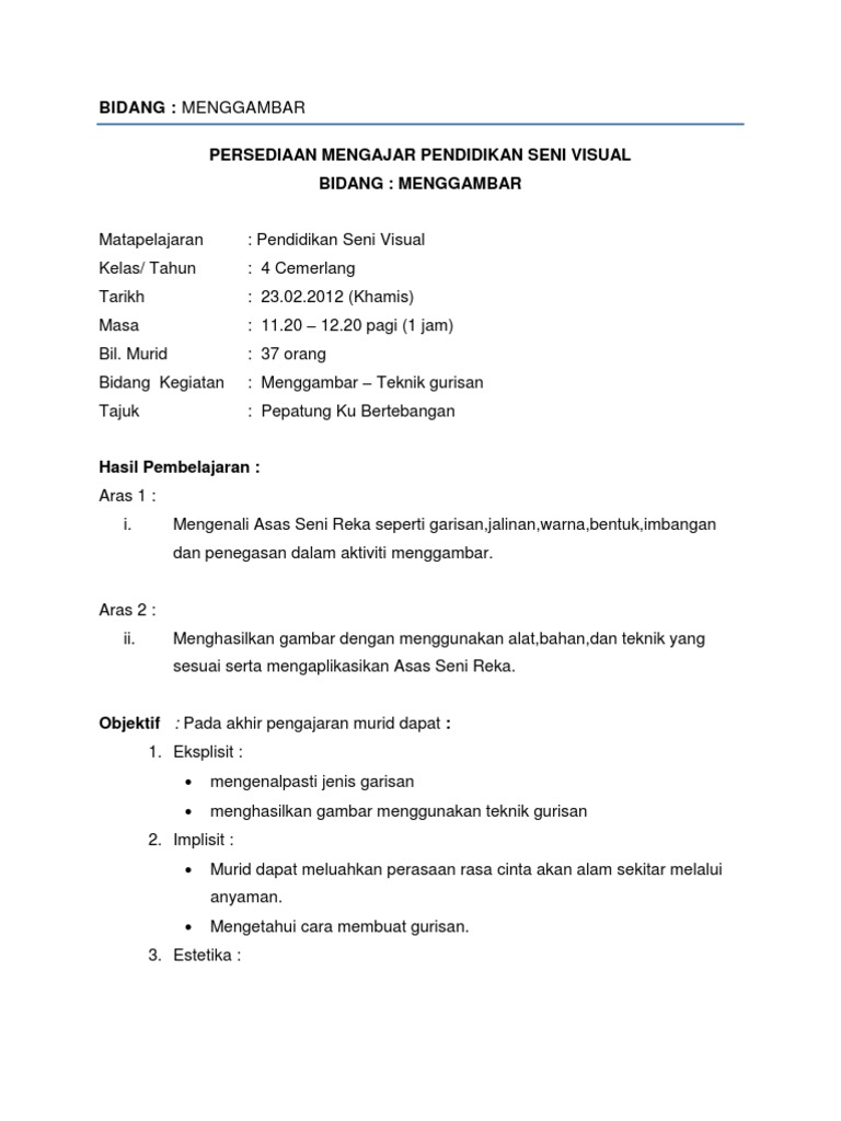Pendidikan Seni Visual 1 Cth Rncngn Pengajaran