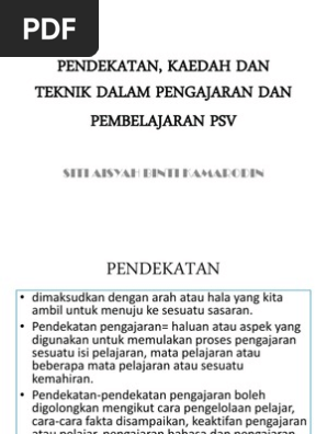 Pendekatan Kaedah Dan Teknik Dalam Pengajaran Dan Pembelajaran Psv