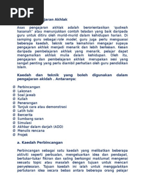 Doc Pengenalan Kepada Kaedah Dan Teknik Pengajaran Dan Pembelajaran Pendidikan Moral Nasihah Ghazali Academia Edu