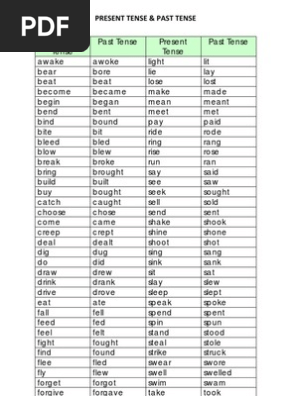 Notes Present Tense Past Tense Grammatical Tense Grammar