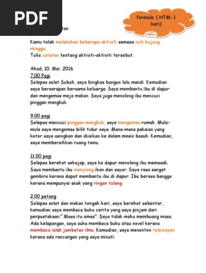 Melakukan Beberapa Aktiviti Cuti Hujung Minggu Catatan Formula Htm 1 Hari