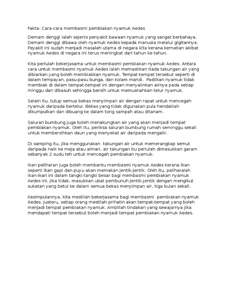 Karangan Cara Cara Mengatasi Penyakit Demam Denggi