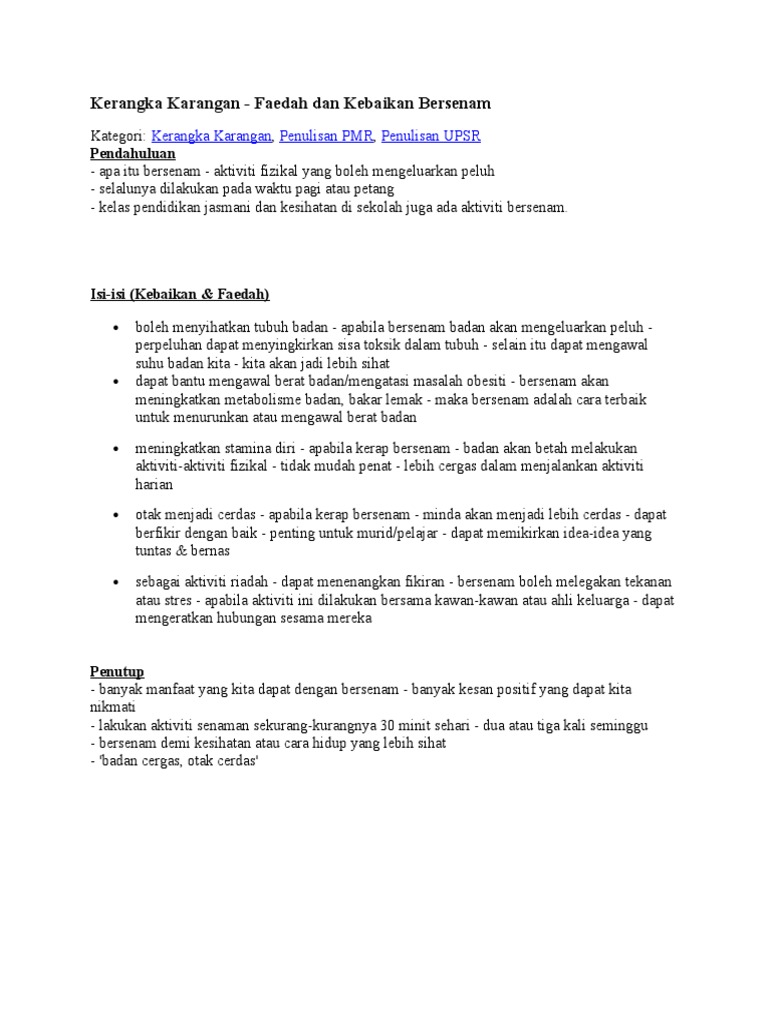 Contoh Karangan Kebaikan Aktiviti Riadah Docx