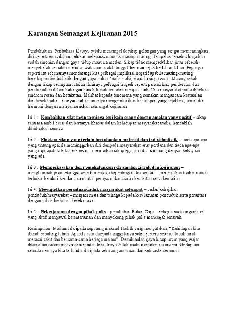 Semangat Kejiranan Contoh Karangan Pmr Spm