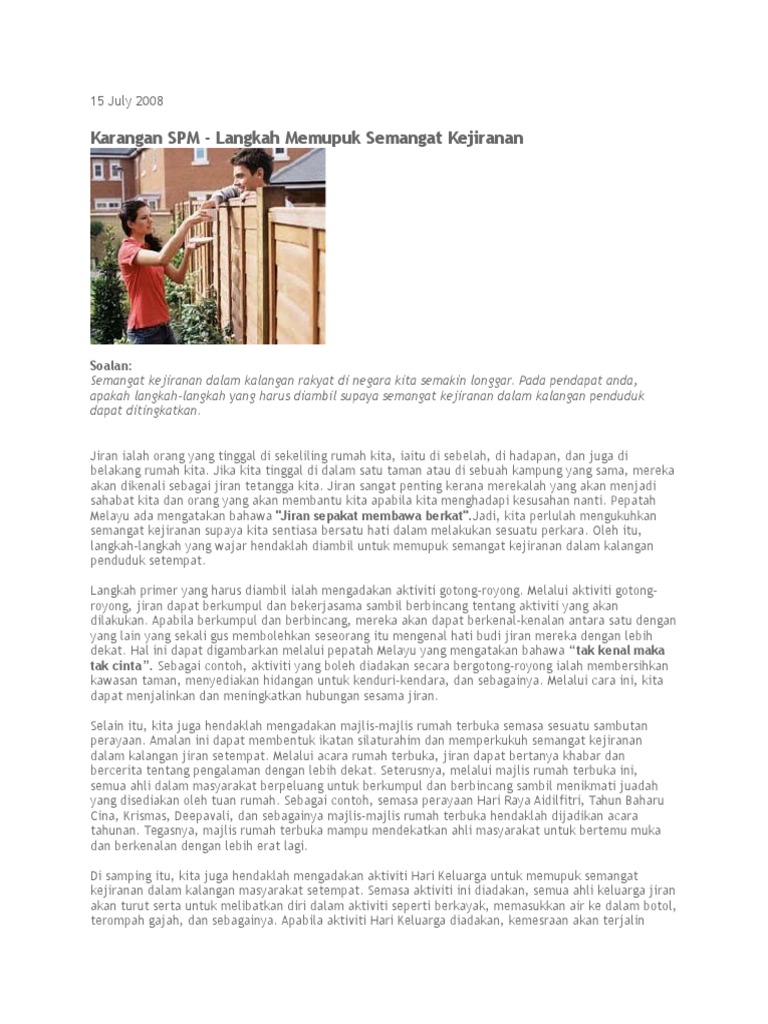Karangan Terbuka Spm 3 Langkah Langkah Memupuk Semangat Kejiranan Dalam Kalangan Masyarakat 2016