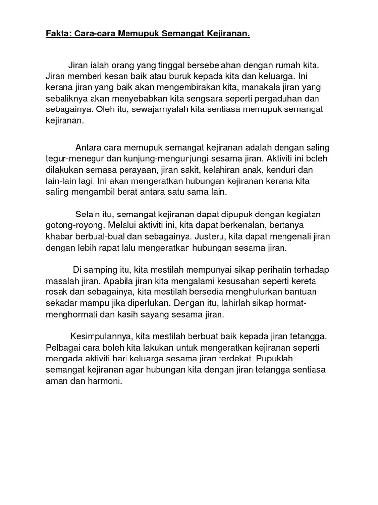Contoh Contoh Karangan Sekolah Rendah Fakta Cara Cara Memupuk Semangat Kejiranan