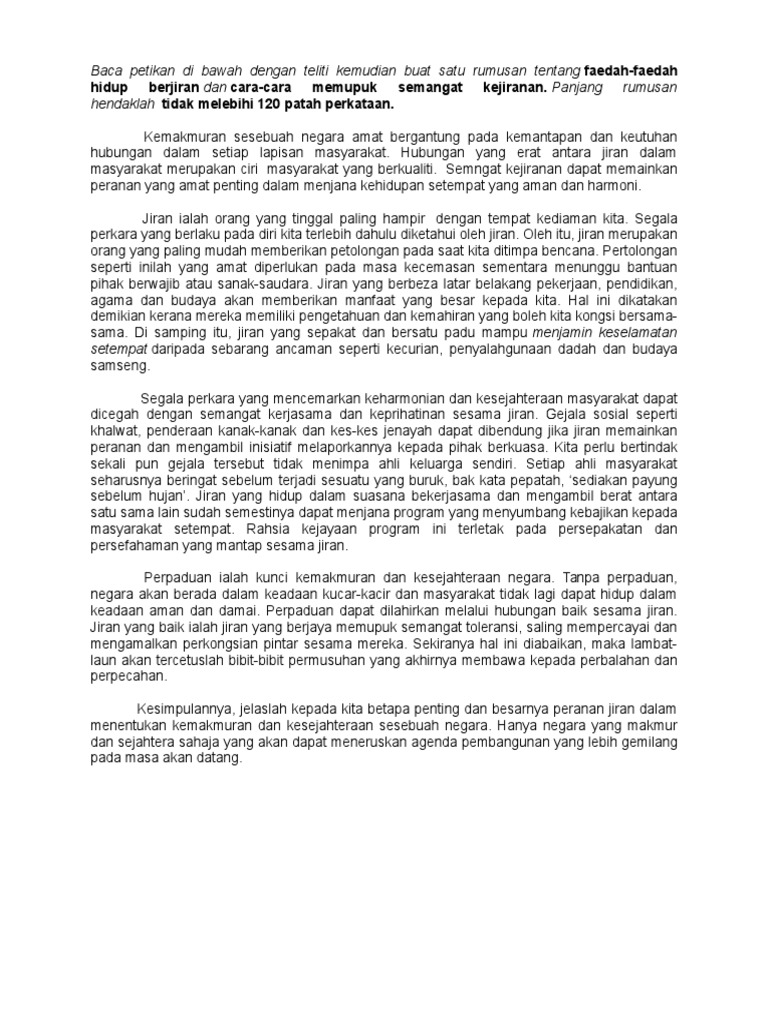 Contoh Soalan Karangan Semangat Kejiranan Soalan L