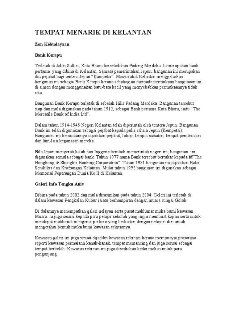 Karangan Fakta Tempat Tempat Menarik Di Malaysia