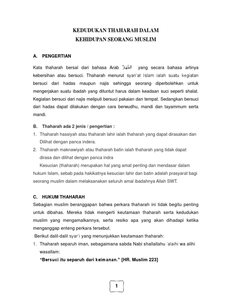 Kedudukan Thaharah Dalam Kehidupan Seorang Muslim