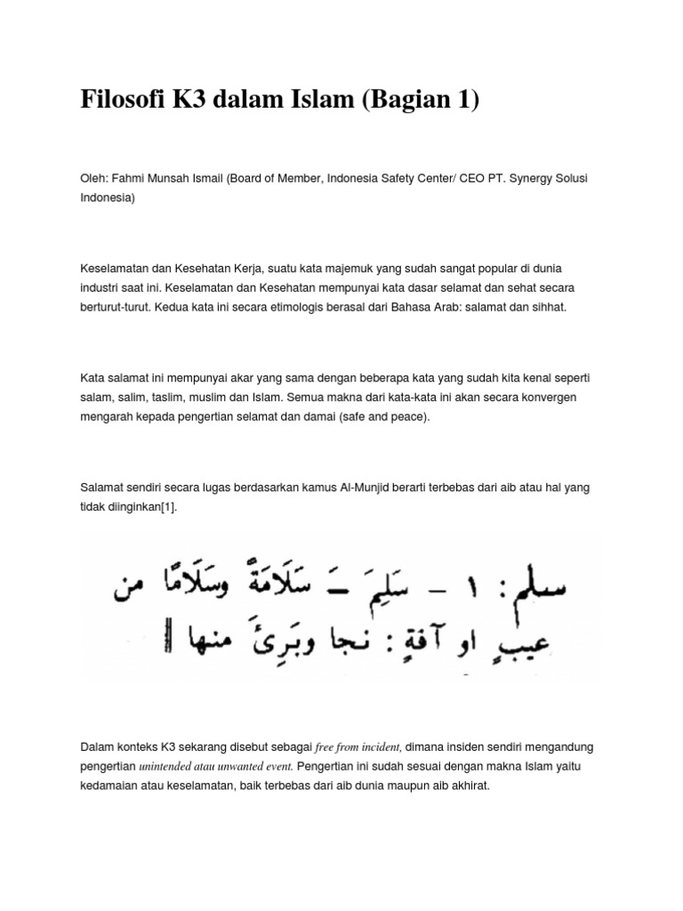 Filosofi K3 Dalam Islam Bagian 1 2 Pak Fahmi M