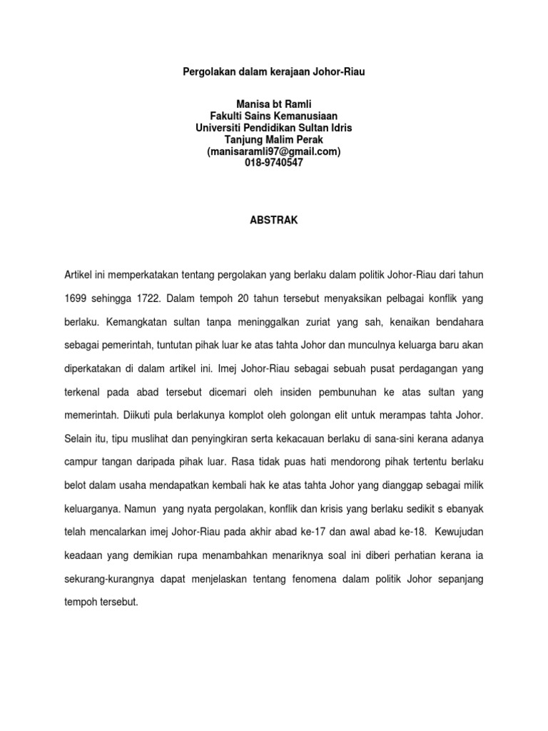 Doc Kerajaan Johor Riau Sejarah Malaysia Nabilah Nizar Academia Edu