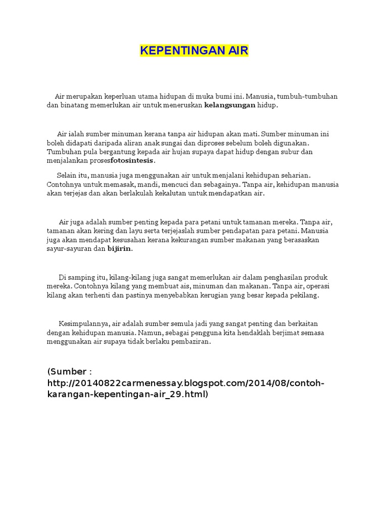 Karangan Untuk Sekolah Rendah Kepentingan Air Untuk Manusia Kegunaan Air Untuk Manusia