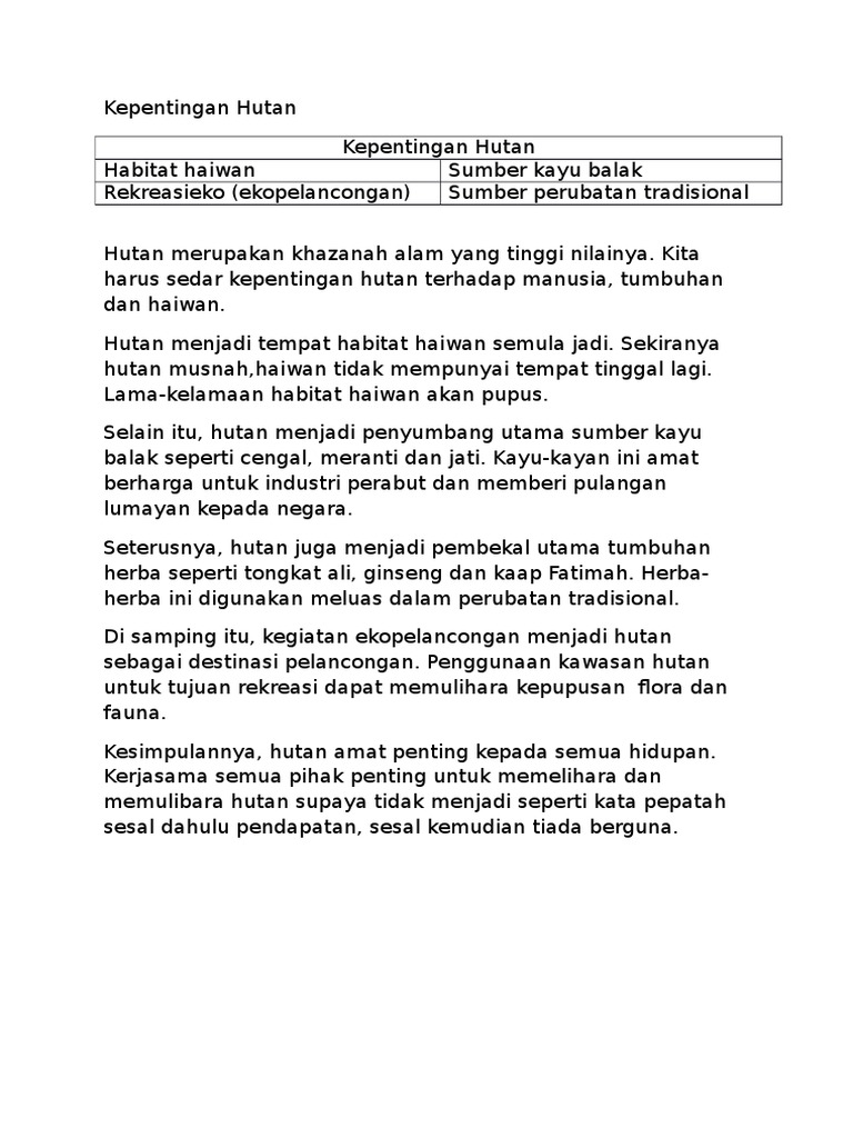 Bahasa Nadi Bangsa Karangan Upsr Kepentingan Hutan