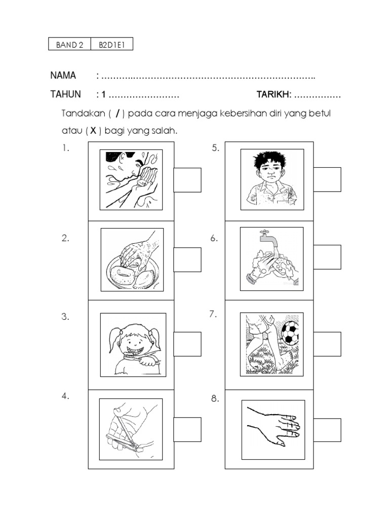 Nama Tahun 1 Tarikh Tandakan Pada Cara Menjaga Kebersihan Diri Yang Betul Atau X Bagi Yang Salah 1 5