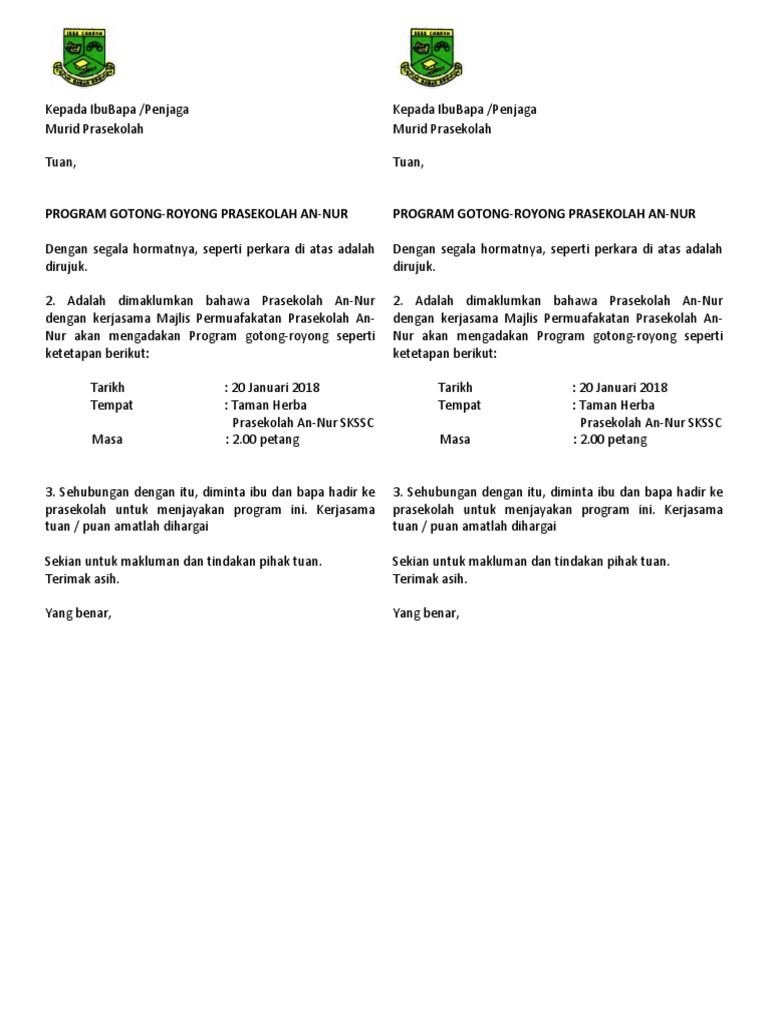 Kertas Kerja Gotong Royong Prasekolah Doc