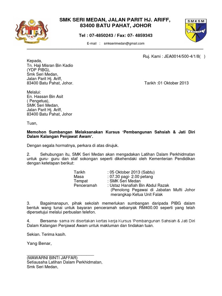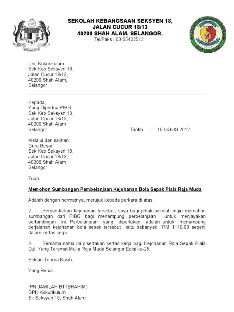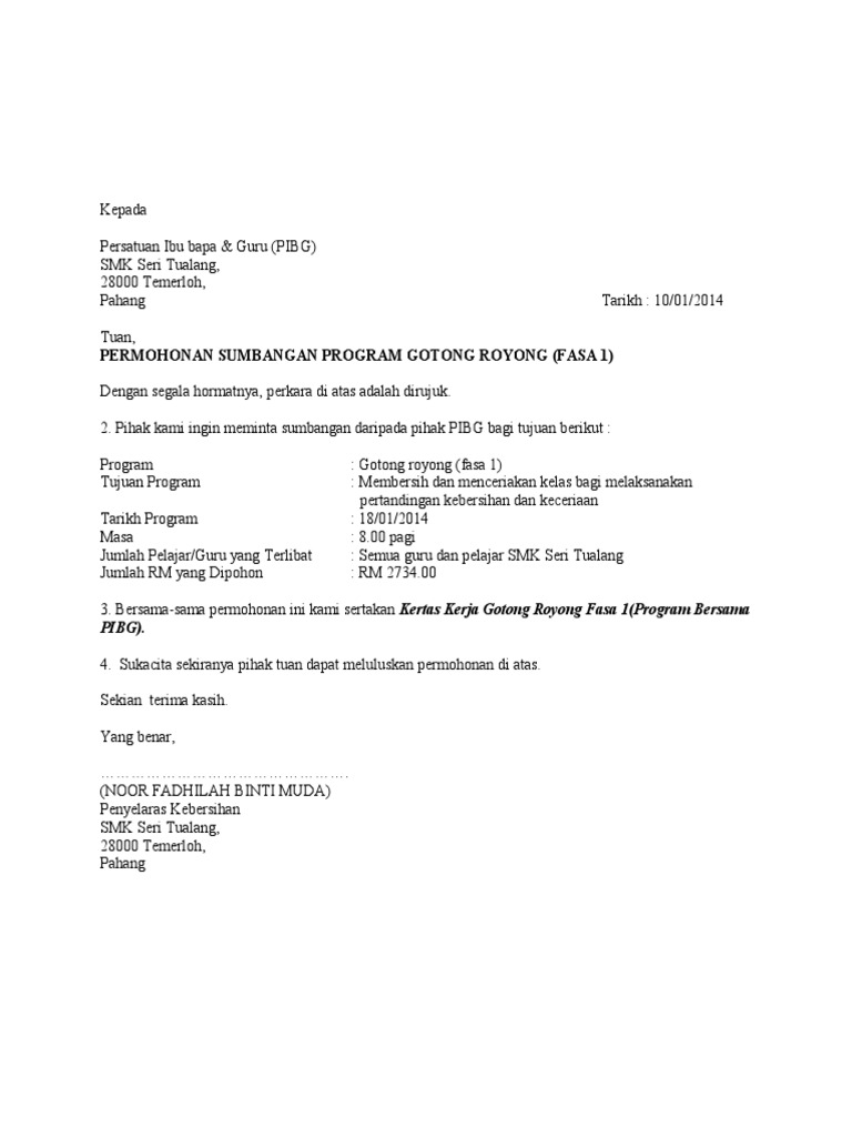 Contoh Surat Rasmi Memohon Sumbangan Pibg Surat Rasmi A